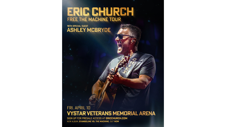 JUST ANNOUNCED: Eric Church brings his Free The Machine Tour to Vystar Veterans Memorial Arena on 4/10 with special guest Ashley McBryde! See LINK IN BIO to enter for a chance to win a pair of tickets to see Eric Church!
