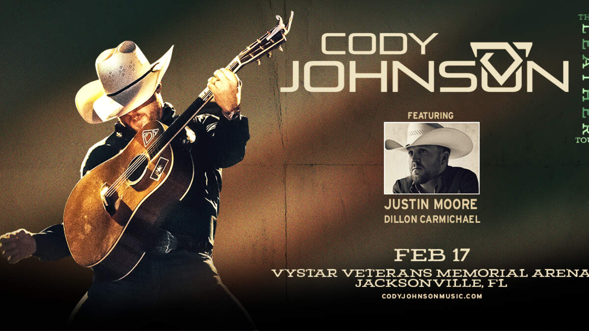 Cody Johnson is bringing The Leather Tour to Jacksonville's VyStar Veterans Memorial Arena on Saturday February 17, 2024 with special guests Justin Moore & Dillon Carmichael!🤠 🔗Tickets on sale NOW at Ticketmaster!